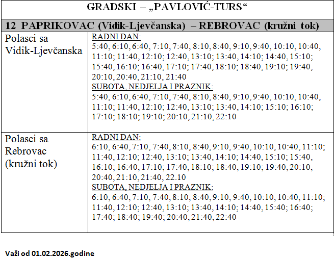 PETRIĆEVAC (Lijevčanska) - CENTAR - REBROVAC (''kružni tok)